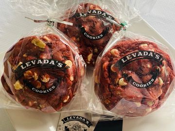 Levada's cookies are packed with good old fashioned flavors. Each 5 ounce cookie is large enough to share. Levada's cookies are made to order. Fresh from the oven, never frozen. Turn around time on each order is 48 hours from purchase. Minimum order is a half dozen. Free delivery.